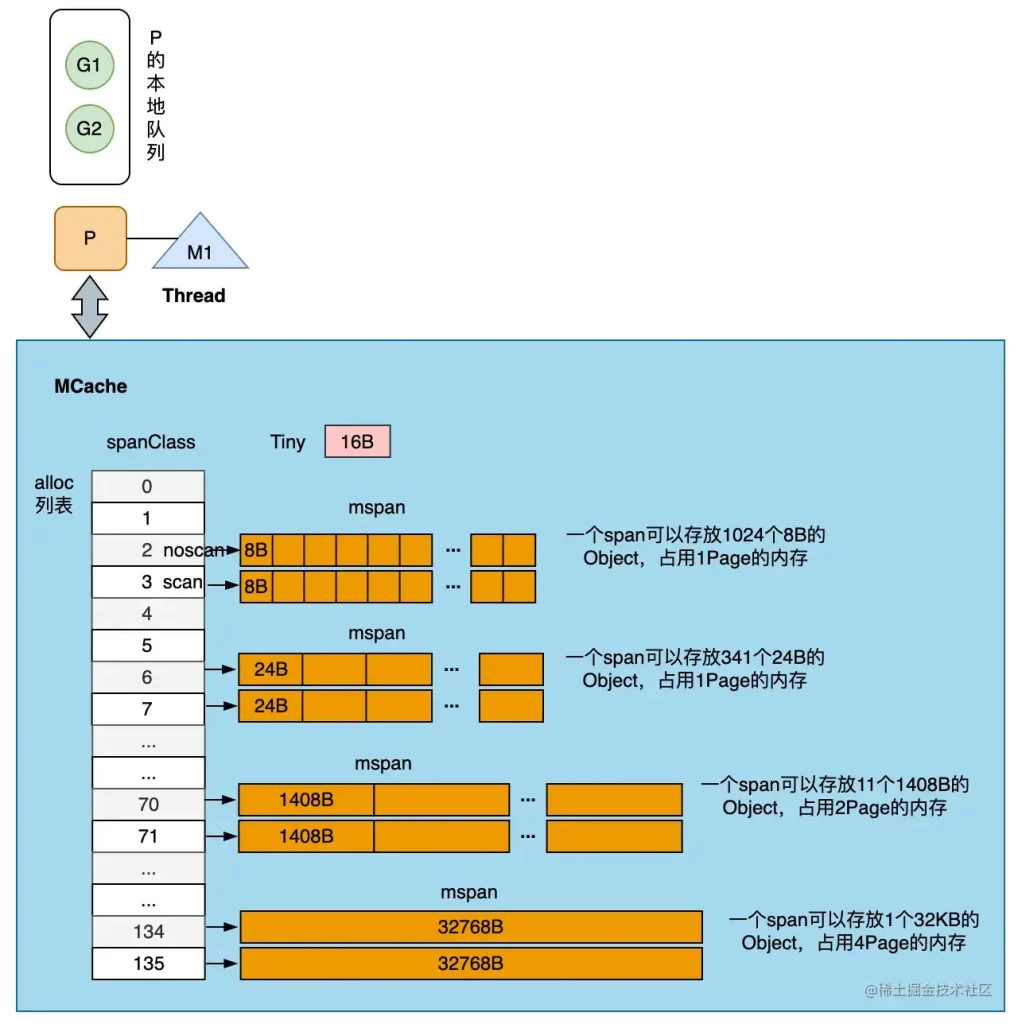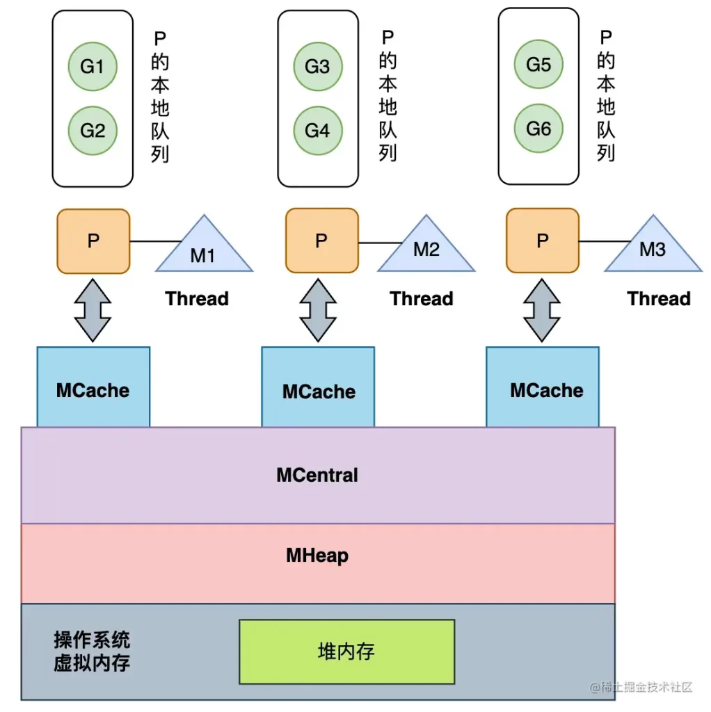 运行时 G-M-P 模型中引入的处理器 P 是线程和 Goroutine 的中间层,我们从它的结构体中就能看到处理器与 M 和 G 的关系: